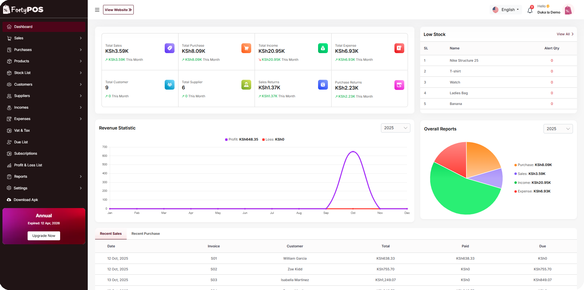 Visit DemoGet started with a free 14-day trial of FortyPOS. No credit card required. Explore all features, manage your sales, and see how it fits your business before you commit.